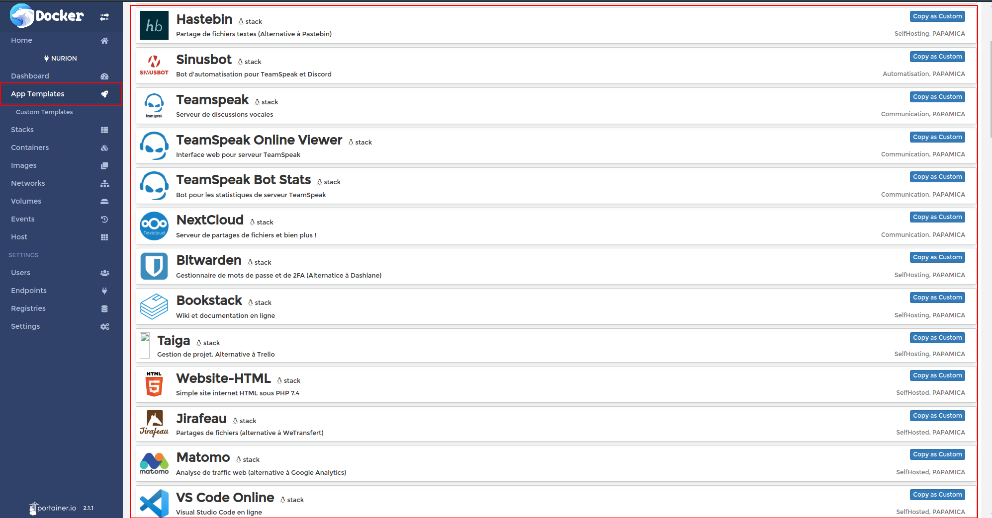 TEMPLATES: https://github.com/PAPAMICA/docker-compose-collection/blob/master/templates-portainer.json