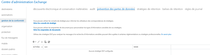 Dans la partie « Gestion de la conformité » puis dans l’onglet « prévention de pertes de données ».