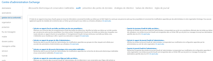 L’audit de Exchange est une fonction qui permet de générer des rapports.