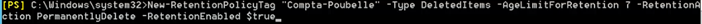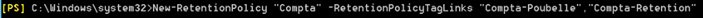 New-RetentionPolicy «nom_de_la_stratégie» -RetentionPolicyTagLinks «nom_de_la_balise»