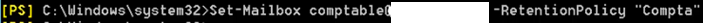 Set-Mailbox «adresse_email» -RetentionPolicy «nom_de_la_stratégie»