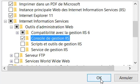 Dans un premier temps et comme indiqué dans les prérequis, il va falloir installer les outils d’administration IIS s’ils ne sont pas déjà présent sur le poste.