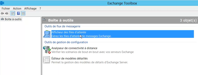 Afficheur des files d’attente : permet d’afficher la file d’attente SMTP et d’analyser l’origine des erreurs de remise des e-mails domaine par domaine. Ce module est très souvent utilisé pour dépanner les services de transport.