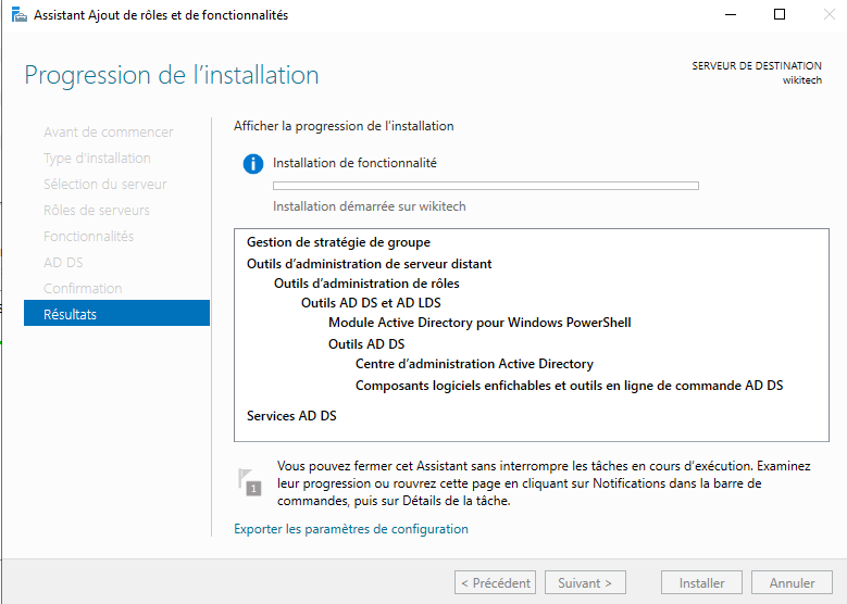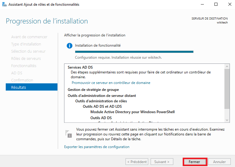 - L'installer de notre rôle est maintenant terminé, on peut cliquer sur **Fermer**