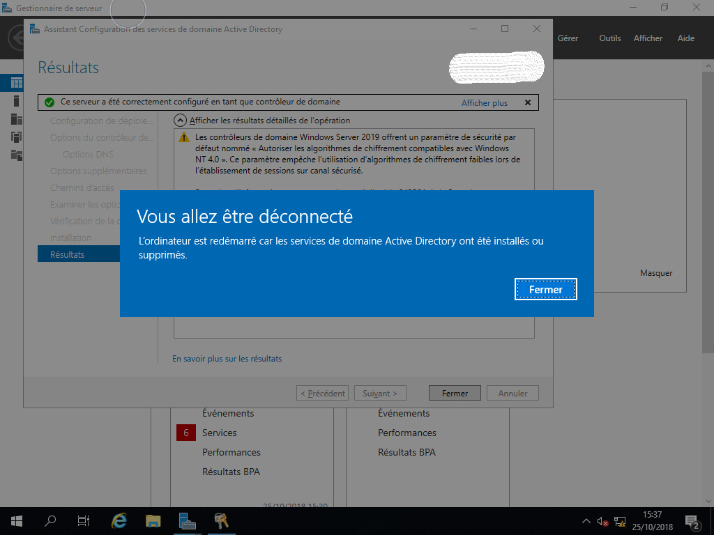A la fin de l'installation de votre contrôleur de domaine, votre serveur va redémarrer.