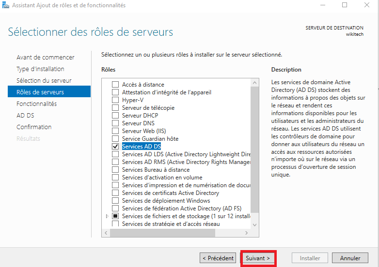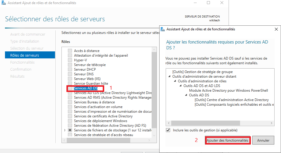 - Sur la console « Gestionnaire de serveur », nous allons ajouter le rôle AD DS.