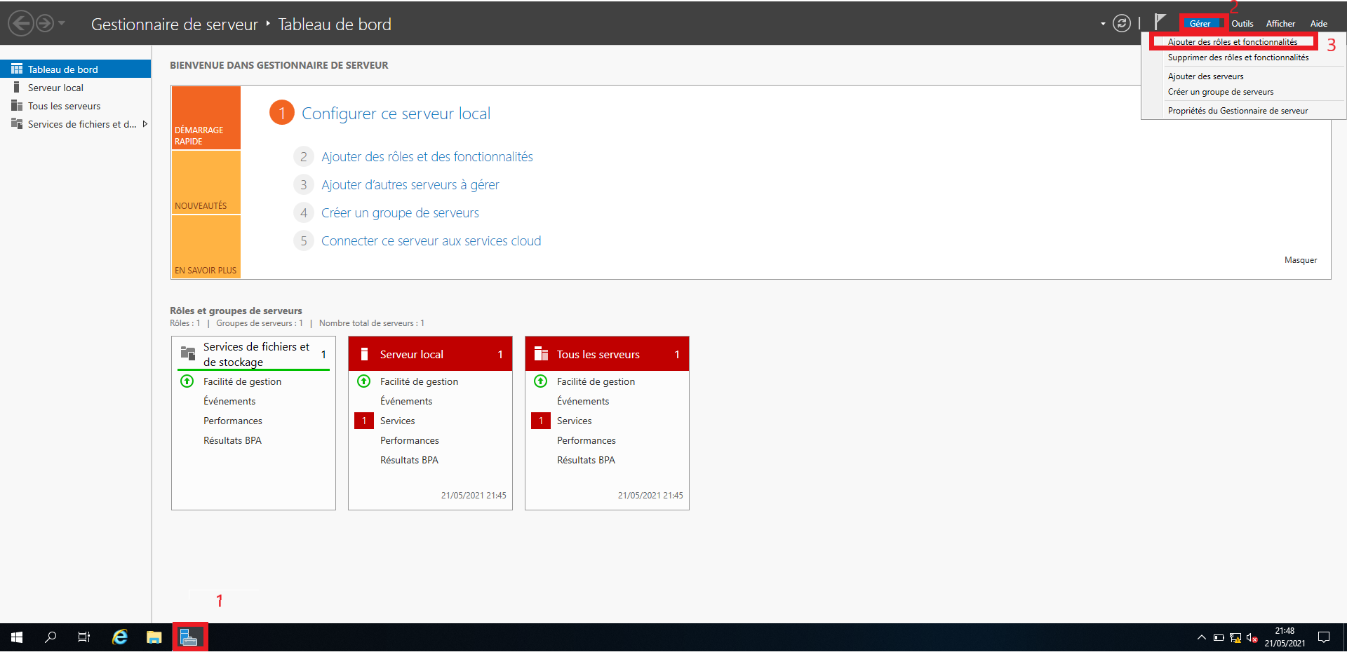 - Cliquez sur **Ajouter des rôles et fonctionnalités**