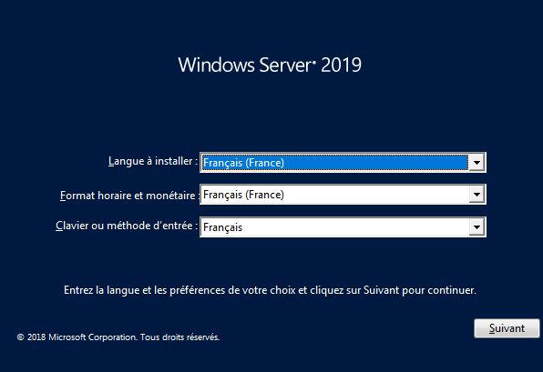 Lancer la machine virtuelle, celle-ci démarrera automatiquement sur l'ISO de Windows serveur 2019