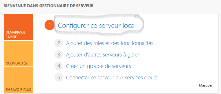Une fois connecté, le Gestionnaire de serveur se lance automatiquement.