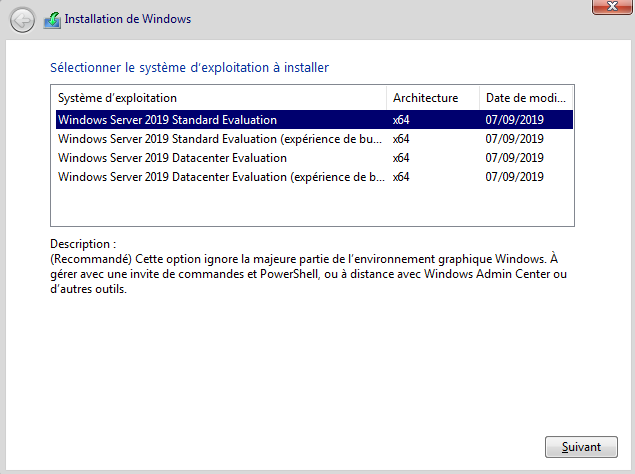 - Windows Server 2019 Datacenter : Windows Server Datacenter est conçu pour les grandes entreprises sans interface graphique.