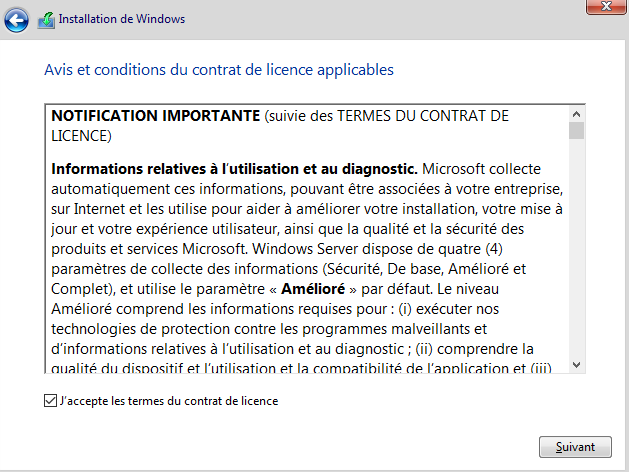 - Une fois le contrat d'utilisation lu et accepter, cliquer sur **Suivant**
