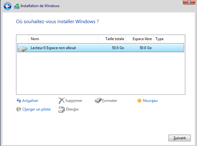 - Une fois votre disque sélectionné, cliquez sur **Suivant**