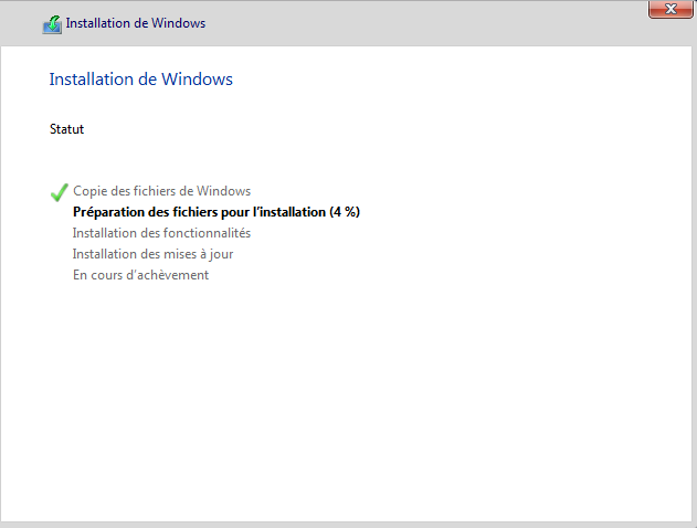 - L'installation de Windows Serveur commence, il ne vous reste plus qu'à patienté.