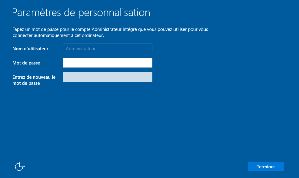 - Une fois le mot de passe, défini cliquer sur **Terminer.**