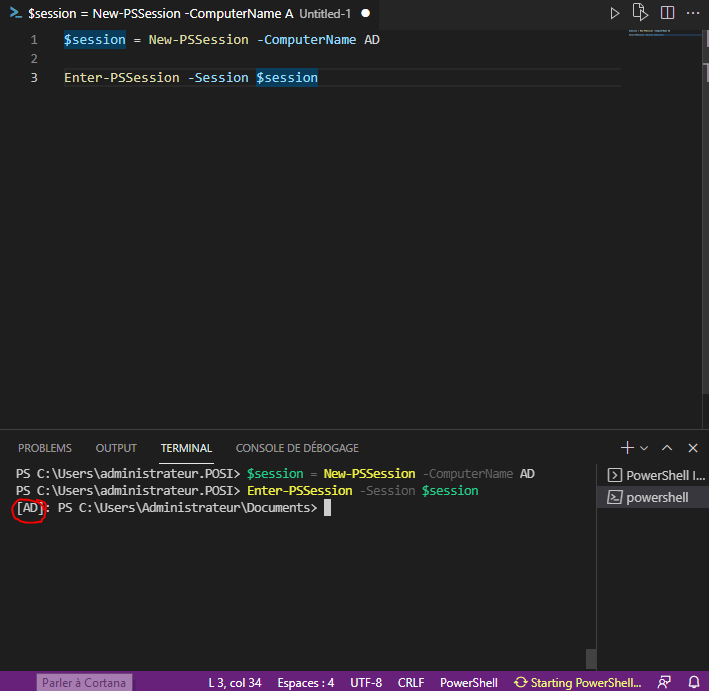 Mais pour faire appel à chaque fois que vous le désirez à cette session, il y a la possibilité de la stocker dans une variable et d'entrer dans celle-ci avec Enter-PSSession quand vous le souhaitez: