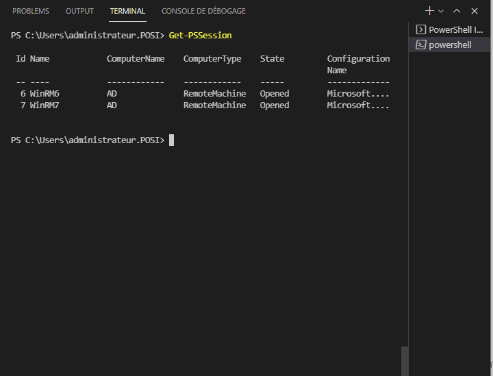 Avec la commande Get-PSSession, vous pouvez consulter les sessions toujours actives.