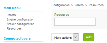 Pour cela aller dans Configuration puis « pollers » puis « ressources » et cliquer sur « add »