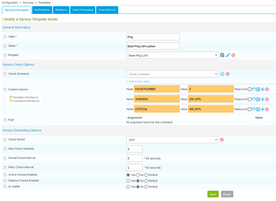 Ce Template va permettre d’effectuer la supervision de la connectivité réseau à l’aide du ping pour les hôtes liés à ce Template. Toutefois il est nécessaire de le configurer selon ses besoins, le nombre de paquets envoyés ou les valeurs pour le « warning » et « critical » ne sont pas forcément celles que l’on souhaite. Il est également important de positionner correctement l’ensemble des périodes de check, des intervalles de supervision ainsi que les notifications comme indiqué précédemment dans cette procédure.