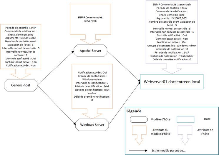 Toutefois si un hôte hérite de plusieurs Template d’hôtes et qu’un même paramètre est défini sur plusieurs Template, alors le modèle d’hôte situé au-dessus des autres modèles est prioritaire par rapport à ses ascendants.