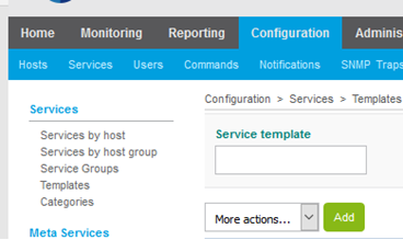 Pour créer un Template de service, il faut cliquer sur « Configuration », sur « Services » puis sur « Templates » et enfin sur « Add »