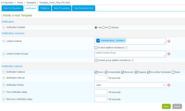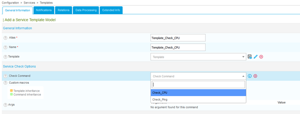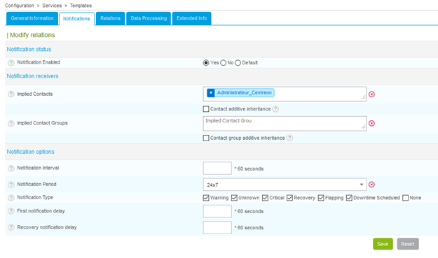 Cette étape peut se faire soit lors de la création d’un Template de service soit lors de la création d’un Template d’hôte.