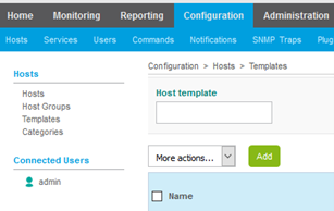 Pour créer un Template d’hôte, il faut cliquer sur « Configuration », sur « hôte » puis sur « Templates » et enfin sur « Add »