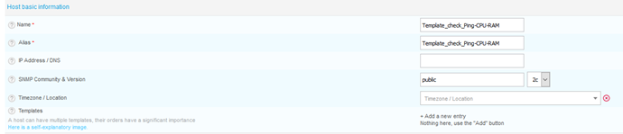 La ligne « Template » permet de choisir un Template afin d’en hériter la configuration, ajoutant des options supplémentaires à chacun des hôtes qui sera affilié à ce Template.