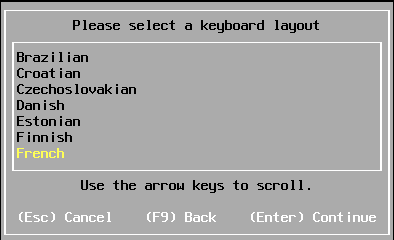 Une fois l'installateur chargé, on presse Entrée, on accepte les conditions puis on choisit notre disque en appuyant sur Entrée.