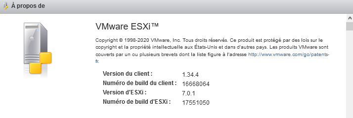 Une fois le redémarrage fait, vous pouvez désactiver le mode de maintenance de votre ESxi et faire la vérification de la bonne application de la mise à jour depuis le menu ***« À propos de »*** que nous avons vu au début de cet article.