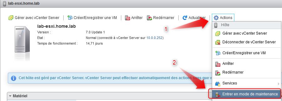 Et il nous reste plus qu'à mettre notre hôte en mode maintenance.