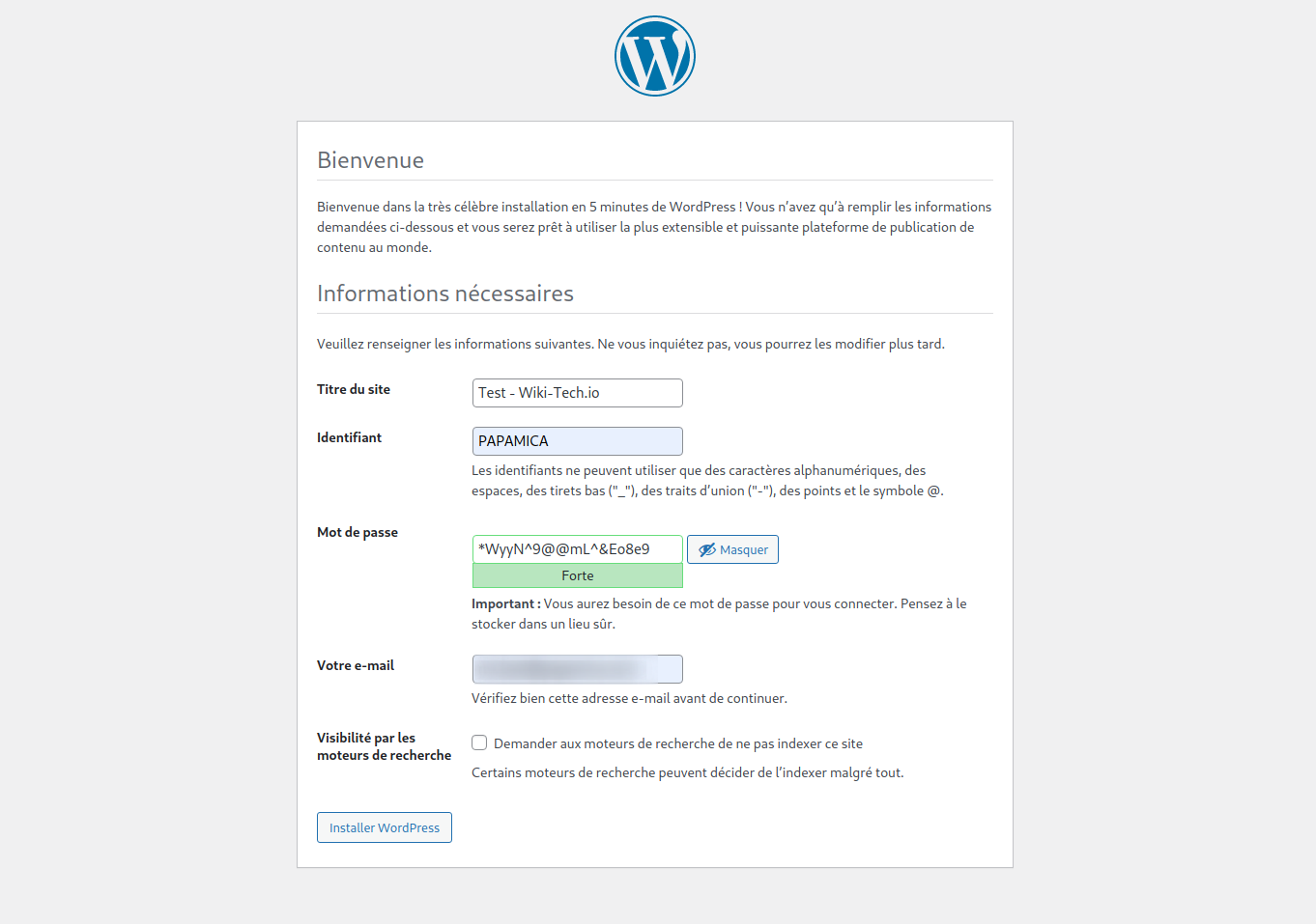 Rendez-vous sur l'URL de votre site, vous devriez tomber sur l'écran suivant :