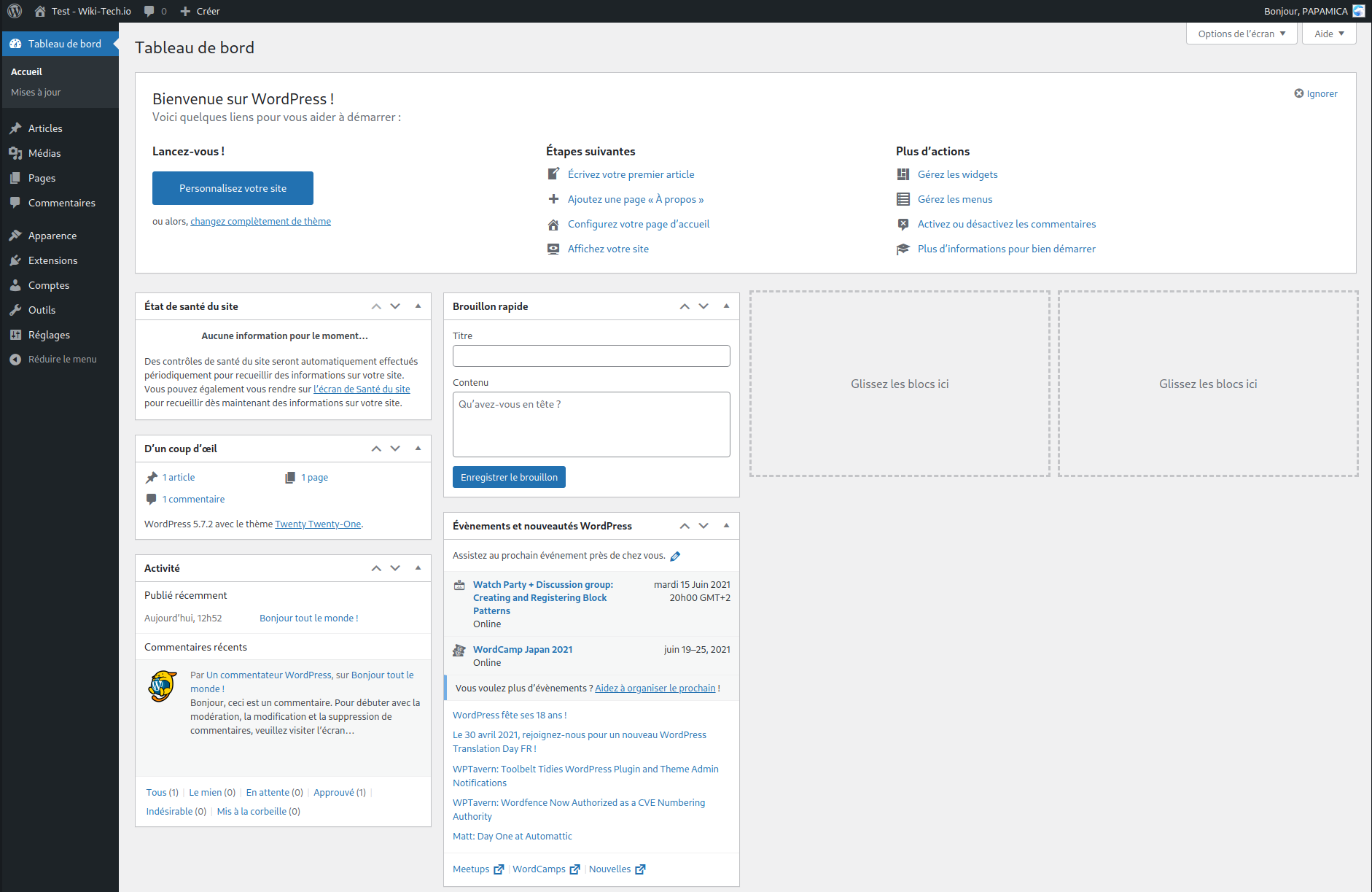 Vous arrivez directement sur le tableau de bord : `http://URL-DU-SITE/wp-admin`